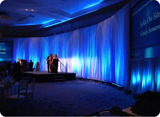 Our elite team will also help you choose the right fullness, length, color, and fabric type. Rest assured that your live event will stand out!